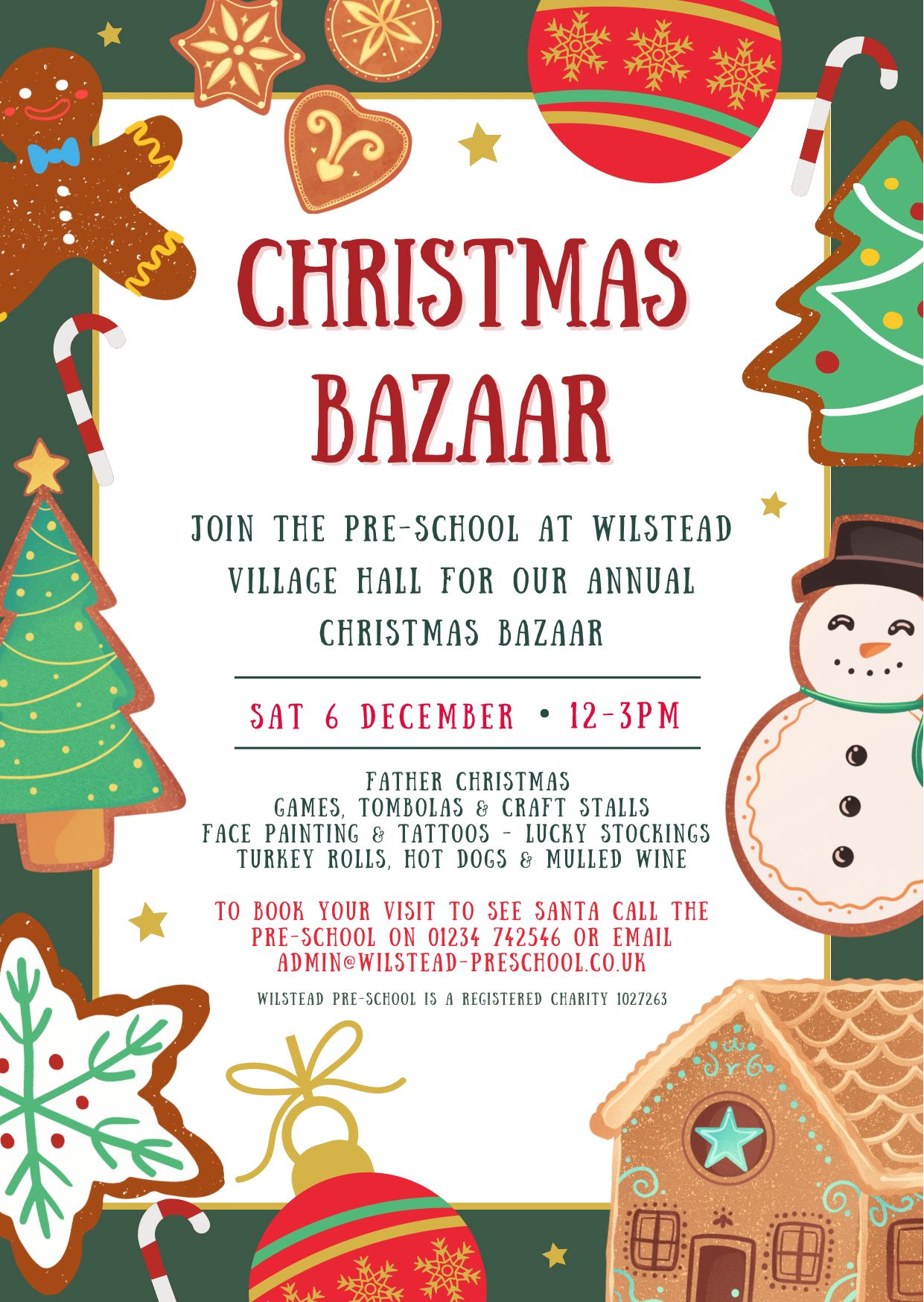 Wer'e excited to invite you and your families to our annual Christmas Bazaar on Saturday 6th December, 12pm - 3pm at Wilstead Village Hall.